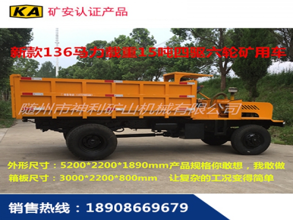 新款載重15噸礦用四驅車,**大載重爬坡25度,采用分時四輪驅動氣動**,后驅四驅輕松轉換,配備136馬力增壓發(fā)動機,12檔帶高低速變速箱,堅固耐用,尺寸可根據巷道環(huán)境訂制。柴油機和變速箱直接傳動,動力更強勁,載重量大。